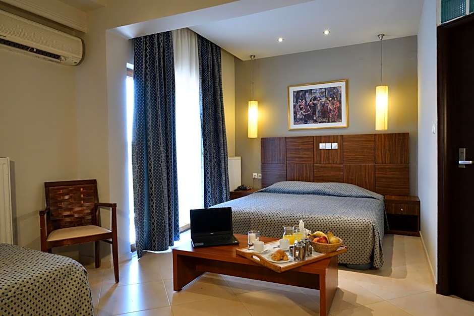 Double rooms are equipped with air conditioning, satellite TV, individual bathroom and a fridge. Most allocate balcony with a view of Thermaikos bay.